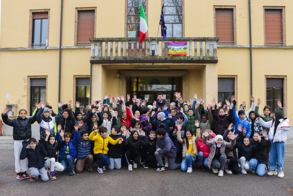 Mattinata alla scuola media Italo Calvino – Angelo Genocchi per il centrale biancorosso Enrico Cester e Renato Barbon