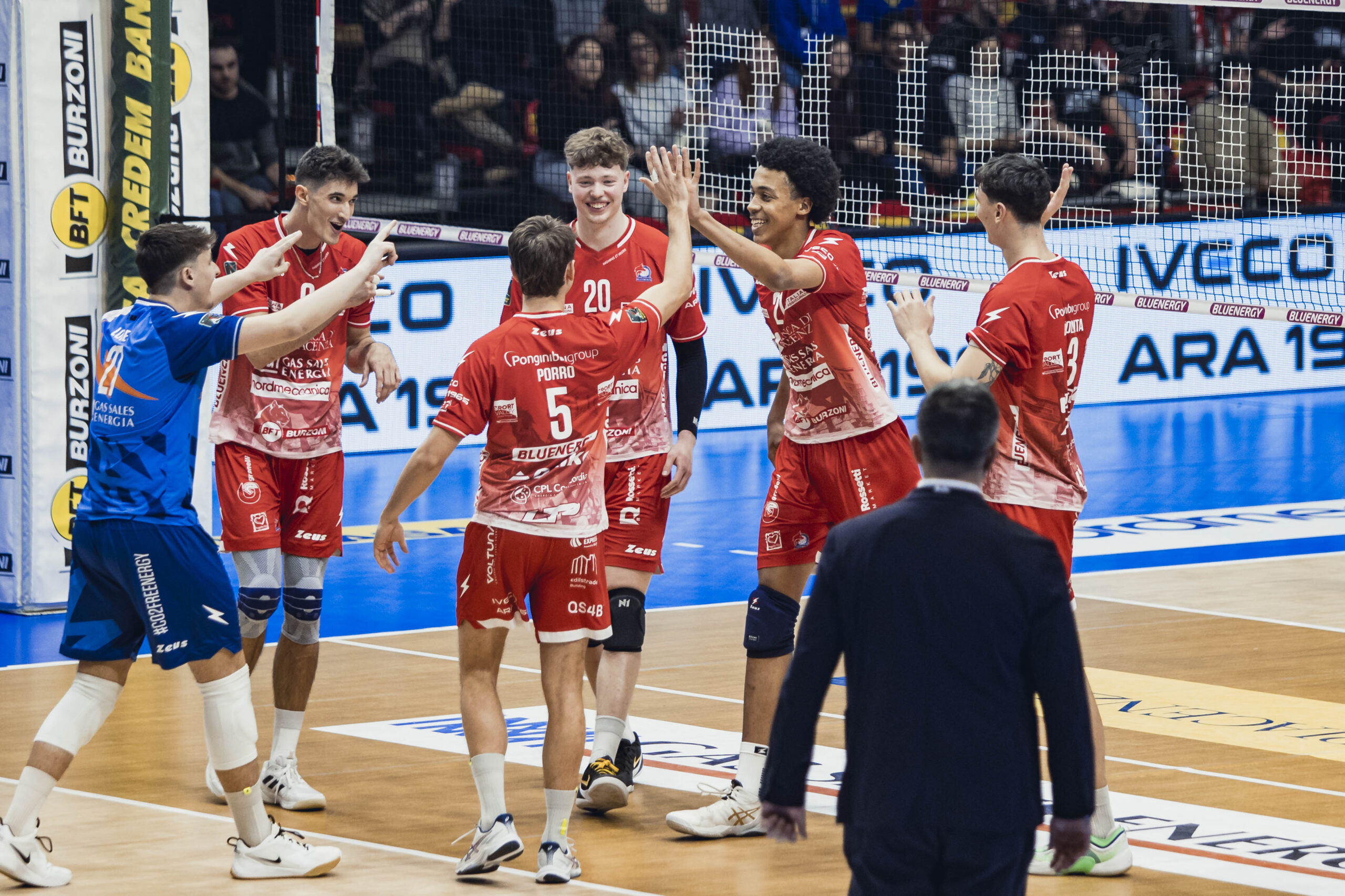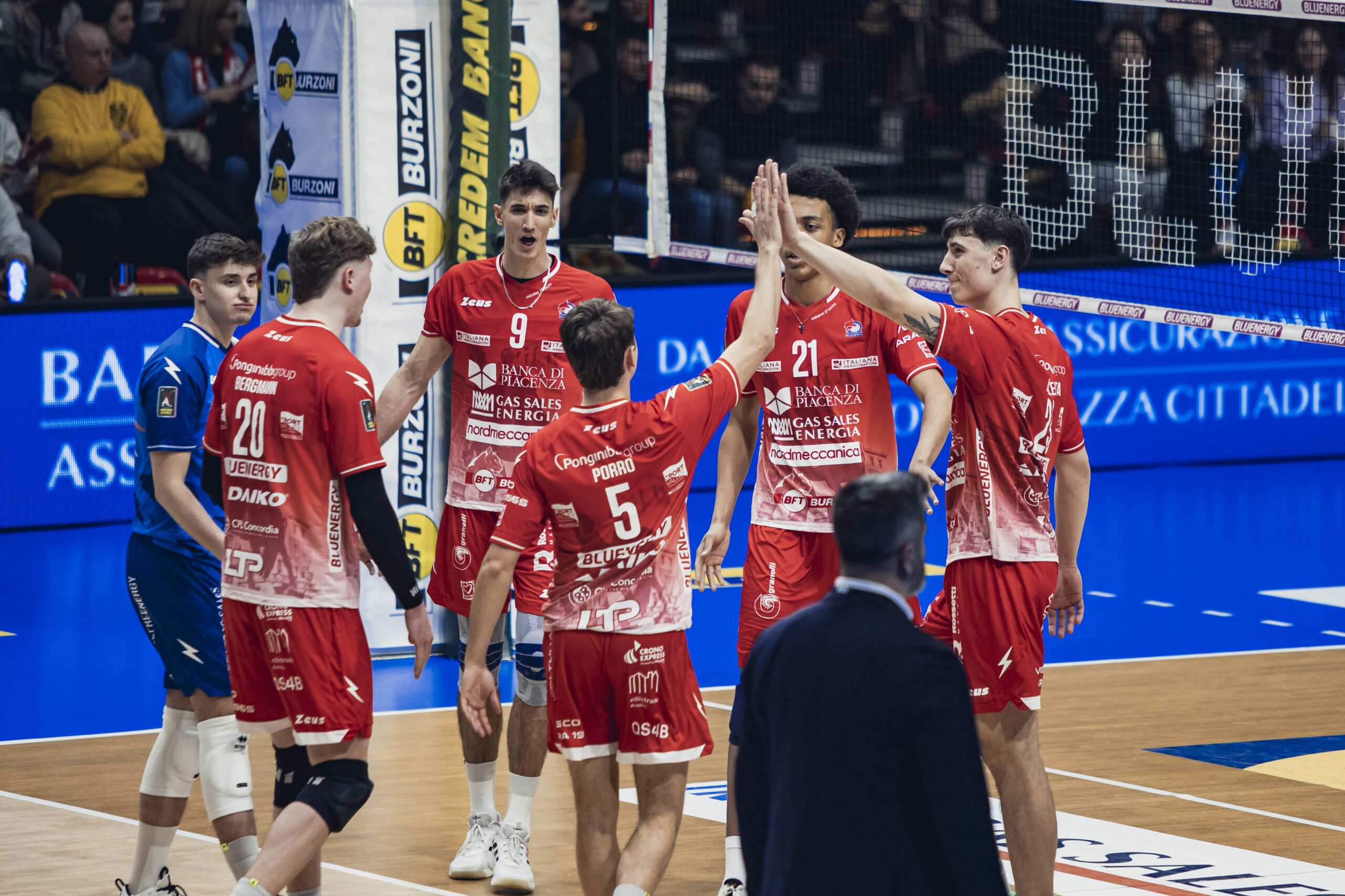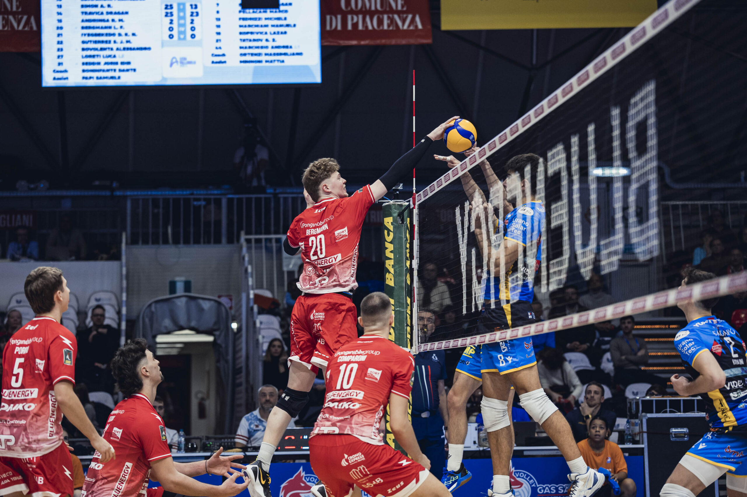 Gas Sales Bluenergy Volley Piacenza: Bovolenta 24, Bergmann 15, Comparoni 3, Porro 3, Mandiraci 15, Seddik 3, Pace (L), Loreti (L), Iyegbekedo 3, Andringa, Leon. Ne: Simon, Travica, Gutierrez. All. Boninfante.