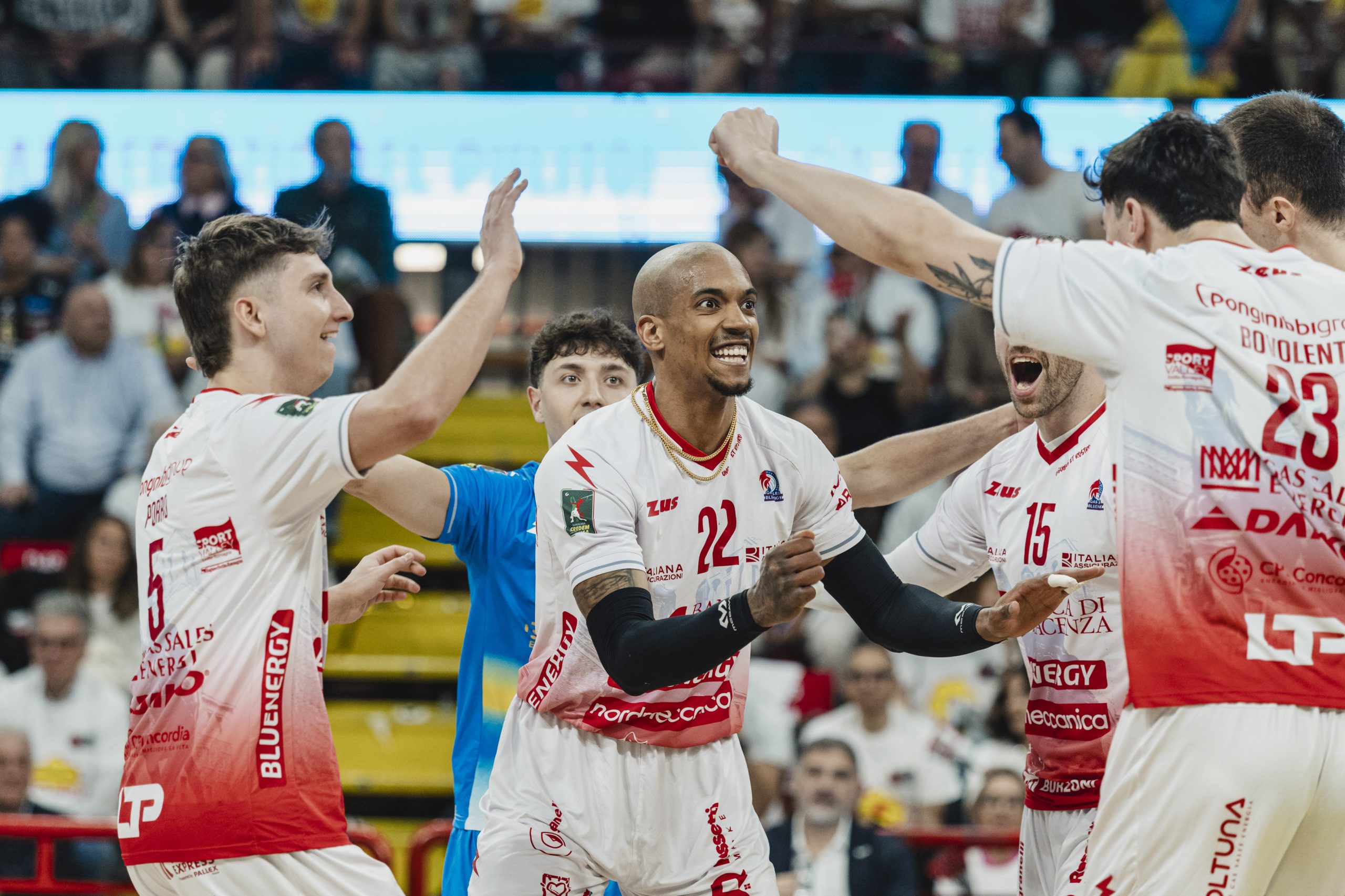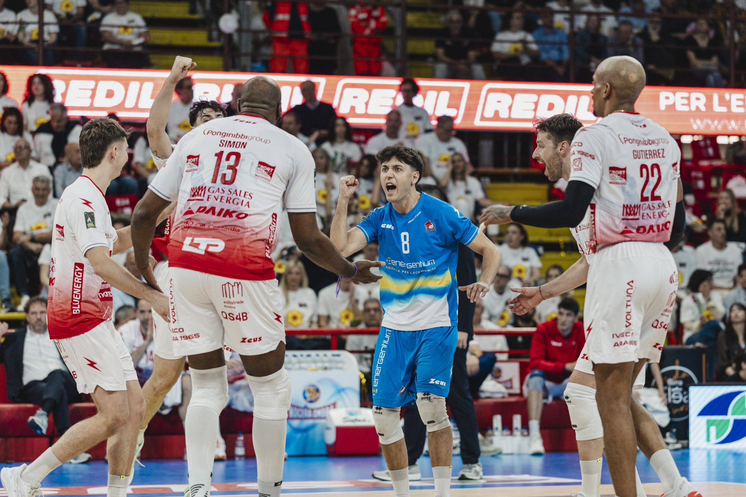 Gas Sales Bluenergy Volley Piacenza: Bovolenta 8, Andringa 4, Simon 14, Porro 1, Gutierrez 11, Comparoni 6, Pace (L), Galassi 2, Mandiraci, Leon 1, Travica. Ne: Bergmann (L), Iyegbekedo, Loreti. All. Boninfante.