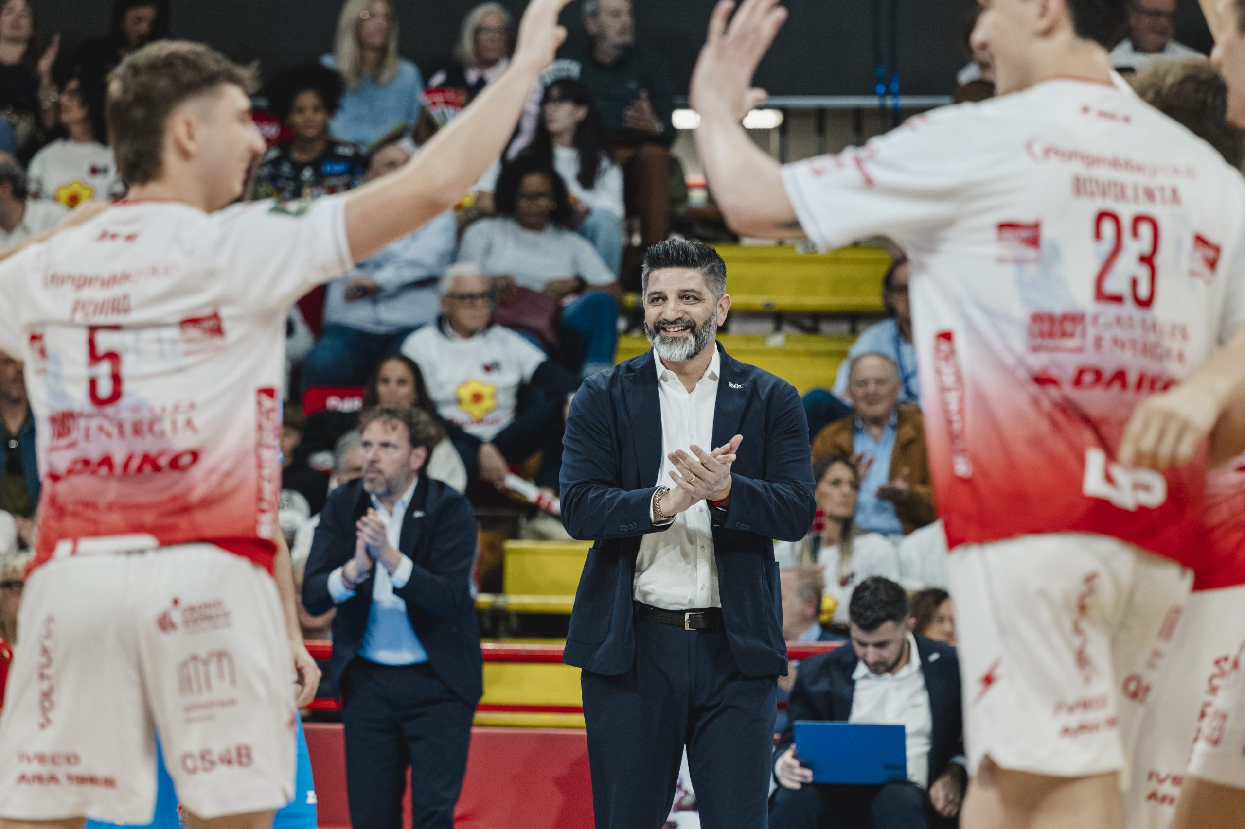 Dante Boninfante: “Non ho nulla da recriminare ai ragazzi, anche se qualche cosa lo abbiamo lasciato nel primo set ma, ripeto, abbiamo affrontato una grande squadra che in questo momento ha un qualcosa più di noi. C’è rammarico per aver chiuso il campionato dopo una serie di Quarti d Finale giocata alla grande ma siamo anche orgogliosi del percorso fatto in questa stagione. E adesso, dopo aver smaltito la delusione per aver chiuso qui il nostro campionato, pensiamo alla finale di Coppa Cev, ci restano due partite per chiudere la stagione e le vogliamo giocare alla grande”.