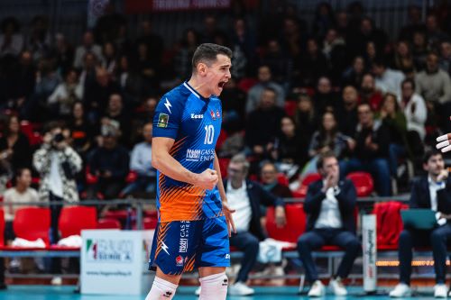 Francesco Recine: “A Lisbona ho preso una bella botta alla schiena, per fortuna gli accertamenti clinici hanno scongiurato fratture, volevo essere di questa partita e quando sono entrato ho dato tutto me stesso per fare bene. Siamo molto sfortunati in fatto di infortuni ma siamo una squadra coriacea e sappiamo adattarci alle situazioni, abbiamo ancora un po’ di alti e bassi ma finchè si vince va bene. L’esclusione dalla nazionale questa estate mi ha fatto male ma mi ha anche dato la spinta per fare sempre meglio per il mio club. Il segreto della vittoria è aver sbagliato poche battute e aver messo in crisi la ricezione di Verona”.