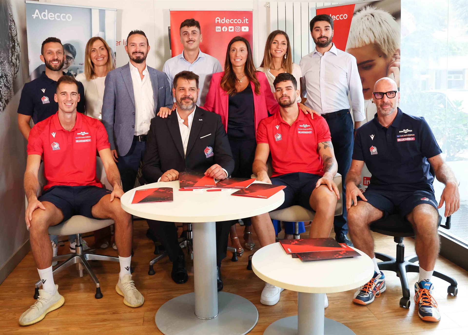 La Filiale Adecco di Piacenza ha tenuto a battesimo il primo momento ufficiale della carriera biancorossa dello schiacciatore Luka Basic, del centrale cubano Roamy Raul Alonso Arce, dello scout man Giuseppe Amoroso e del medico sociale dottor Francesco Zucchi.
