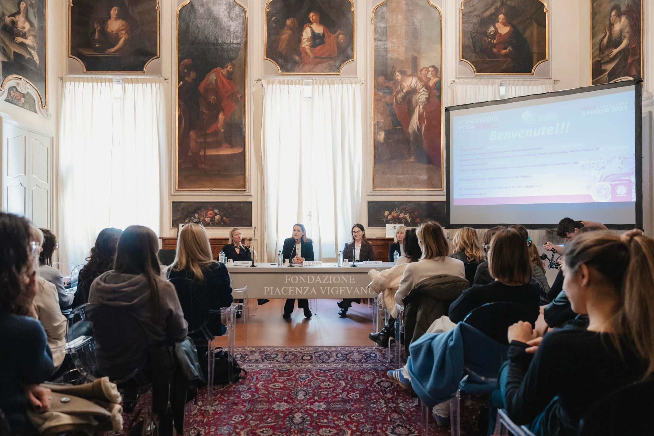 Il Pomeriggio Rosa si è svolto nella splendida cornice di Palazzo Rota Pisaroni, messo a disposizione dalla Fondazione di Piacenza e Vigevano.