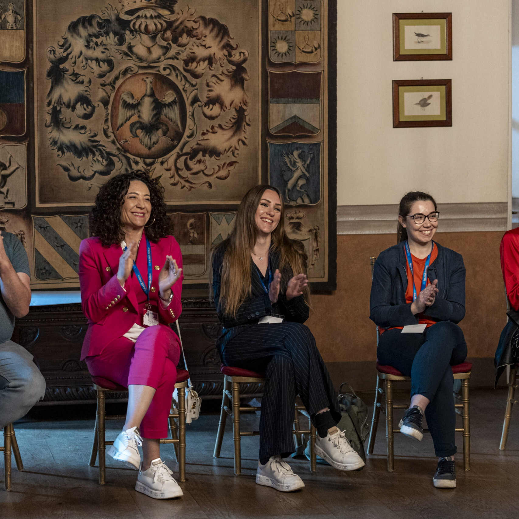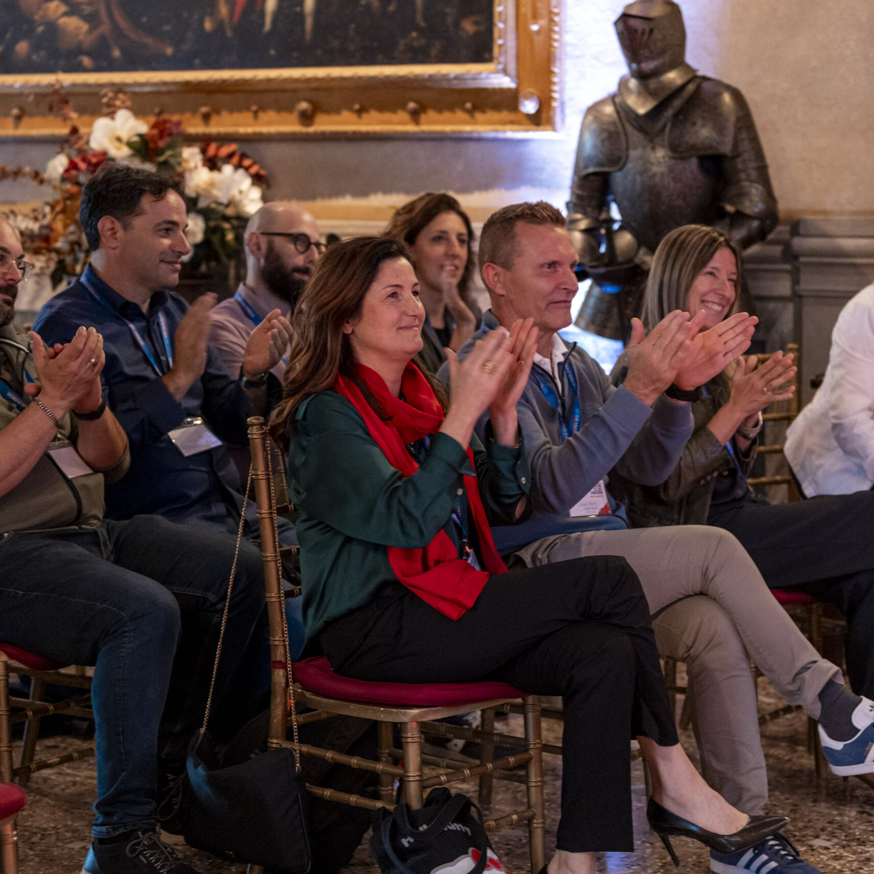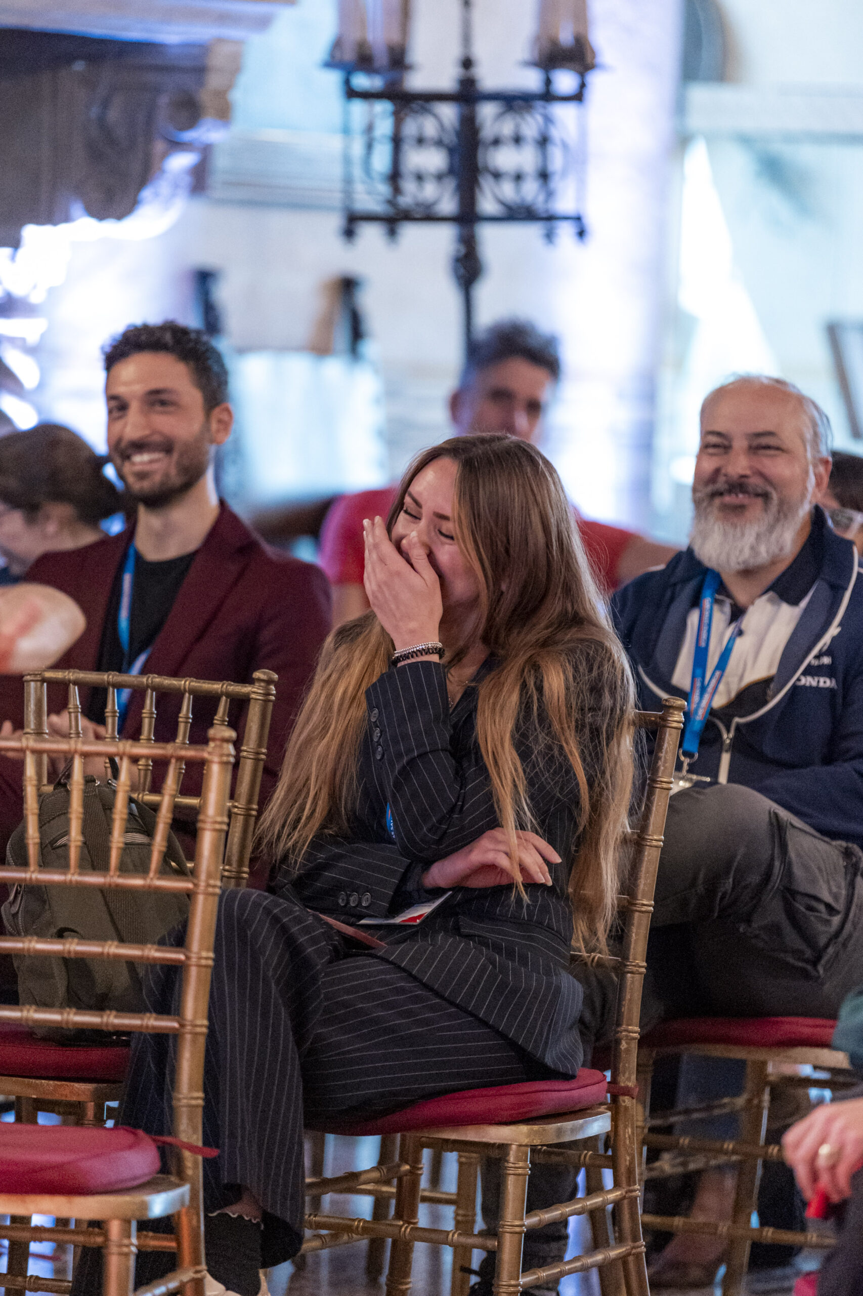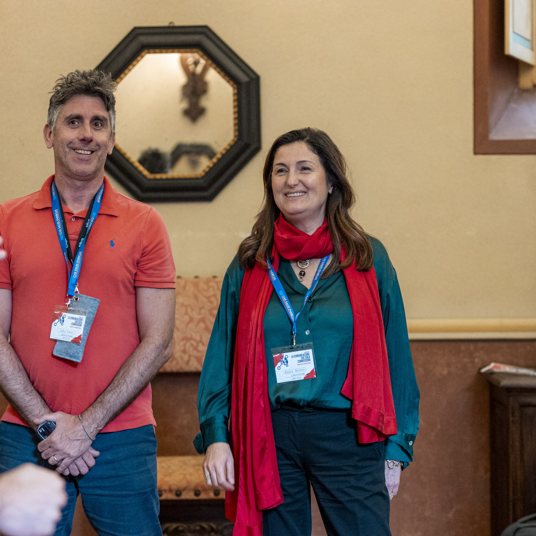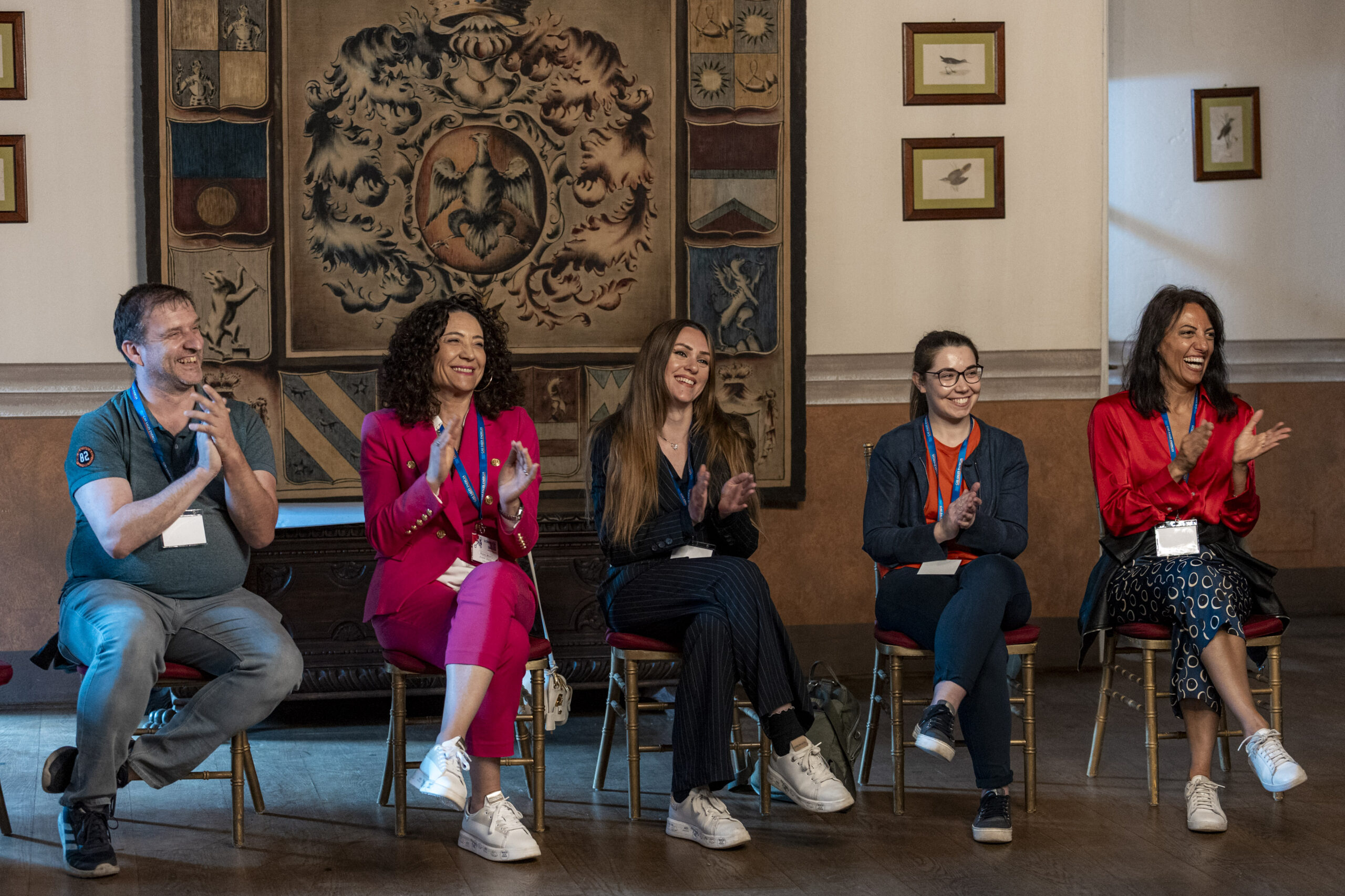 Alla fine delle singole attività, gli ospiti si sono nuovamente riuniti nel salone d’onore per assistere allo spettacolo finale di improvvisazione teatrale che ha visto protagonisti sia i formatori che alcuni sponsor, dando vita a un momento di partecipazione attiva e divertente.